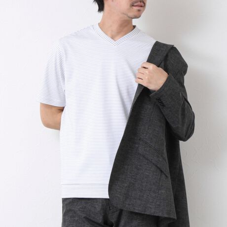 マルイウェブチャネル   /   ノーリーズ   /   トップス   /   Tシャツ・カットソー   /   《ビジカジ対応》セミシルケットスムース ボーダー Vネック ドレスTシャツ 25SS