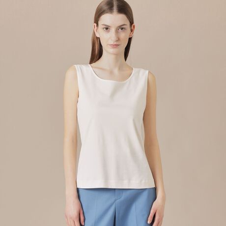 滑らかな肌触りの素材感を十分に感じていただけるタンクトップです。シャツなどに合わせやすい様、衿ぐりを少し横に広く開け、第一釦を外した際に胸元が綺麗に収まる様調整し、丁寧に仕立てたアイテムです。