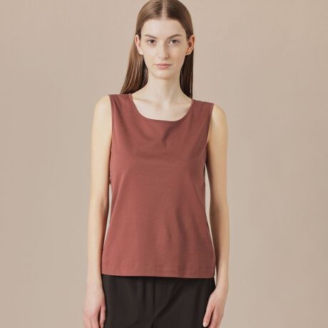 滑らかな肌触りの素材感を十分に感じていただけるタンクトップです。シャツなどに合わせやすい様、衿ぐりを少し横に広く開け、第一釦を外した際に胸元が綺麗に収まる様調整し、丁寧に仕立てたアイテムです。