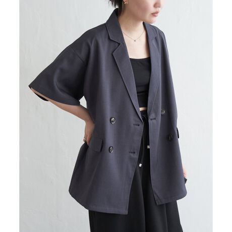 さらっと羽織れる軽やかさと、上品な表情を兼ね備えたヘザーエステルツイル素材の半袖ジャケット。