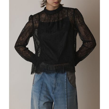 繊細で美しいレースでお作りした、フェミニンムード漂う万能トップス。適度なシアー感がりつつも裏にチュールをあてている為透け過ぎず、着心地の良い一枚に仕上げています。裾はスカラップで処理した美しい仕様に拘り、レースの表情を活かしたお作り。さらにカフス袖にする事できっちり感をプラスし、首元はスタンドネックにする事で、クラシカルな雰囲気薫る大人なデザインに。シワになりにくく、お手入れが楽なのも嬉しいポイントです。一枚着としてはもちろんの事、ジャケットなどのインナー使いから春のセレモニーシーンにもぴったりな一品です。