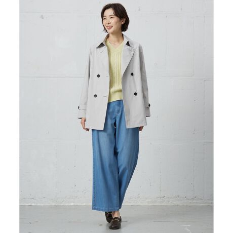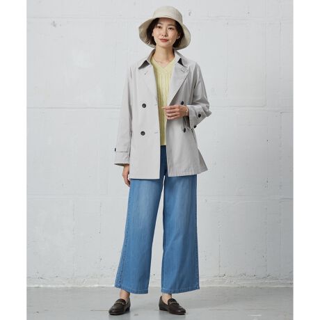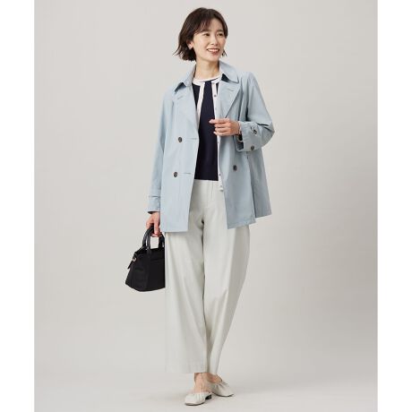 ボトムスを選ばない、軽い着心地の機能性ダブルトレンチコート
