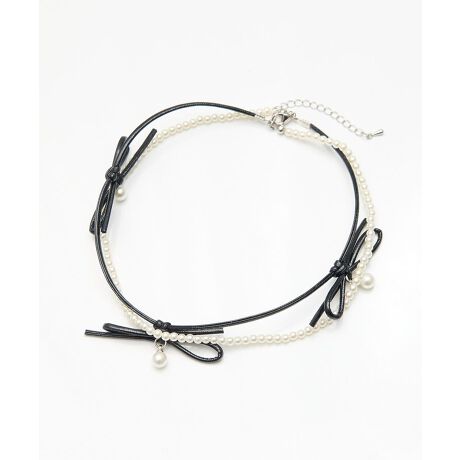 <b>【超十代-ULTRA TEENS FES-2025 ゆうにゃんさん着用アイテム】</b>レザー調コードとパールを2連にしたレイヤードチョーカー。甘めなリボンディテールにはさりげなく揺れるパールモチーフをプラスしました。首元に優しくフィットする華奢なデザインがスタイリングのアクセントに。カジュアルなコーディネートからバレーコアスタイルまで幅広くマッチしてくれるおすすめのアイテムです。※モデル着用画像は、光の当たり具合で色味が違って見える場合がございます。※お使いのモニター環境によって商品の色味が違って見える場合がございます。