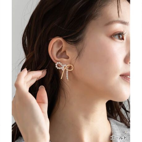 <25春夏新作>リボンパールピアス