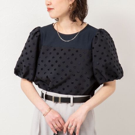 ・胸元はシアー感のある切り替えで、抜け感をプラス