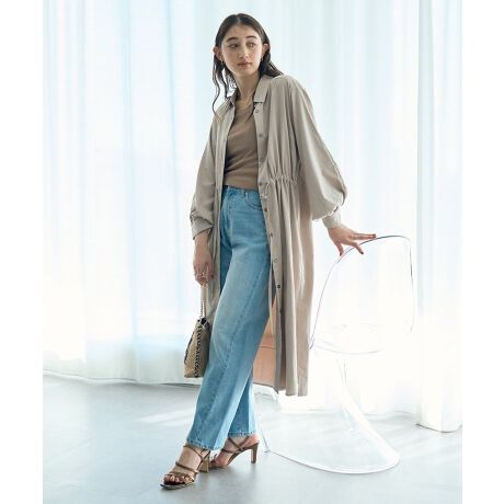 ボリューミーなバルーンスリーブが人気のシャツワンピース。袖の内側ボタンでフォルムアレンジを楽しめる2WAYデザインです。すとんとしたストレートシルエットはウエストのリボンをきゅっと絞ってスタイルアップを演出。さらっと1枚で着こなすのはもちろん、前を開けて羽織りとしても活躍する、マルチなアイテムです。透け感[なし]