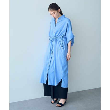 ボリューミーなバルーンスリーブが人気のシャツワンピース。袖の内側ボタンでフォルムアレンジを楽しめる2WAYデザインです。すとんとしたストレートシルエットはウエストのリボンをきゅっと絞ってスタイルアップを演出。さらっと1枚で着こなすのはもちろん、前を開けて羽織りとしても活躍する、マルチなアイテムです。透け感[なし]