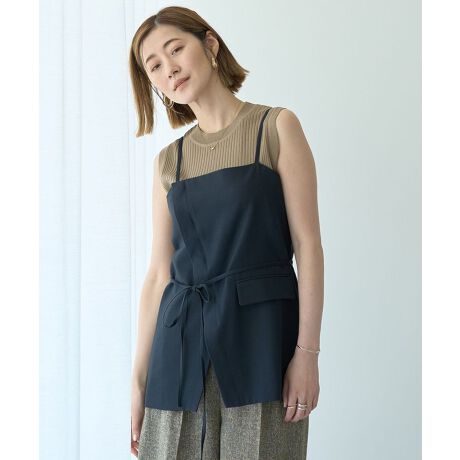 アシンメトリーなデザインが魅力的なキャミソールジレ。