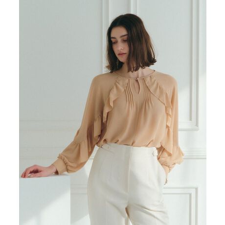 落ち感のあるドレープシアー素材で仕立てた、軽やかな印象のブラウス。