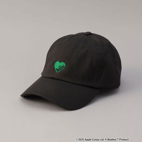 ビートルズのロゴをハートモチーフやロゴ刺繍でデザインしたベーシックな6パネルキャップ。