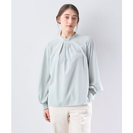 フロントのピンタックとアクセサリーがポイントの華やかなブラウス。上品に煌めくメタルパーツは取り外し可能な2WAYデザインです。シンプルなワンカラーでコーディネートに取り入れやすく、ジャケットのインナーアイテムとしても最適。春のセレモニーシーンやオフィススタイルにも活躍してくれるおすすめの一枚です。