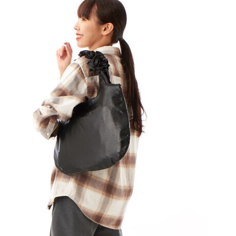 [型番:24837]Scurunchy(シュシュ)のようなハンドルが特徴のバッグ。光沢のある素材は楽しく軽やかなものになります。シンプルなシルエットにワンポイントが光るシリーズです。定期・スマートフォン・お財布など普段使う荷物がすっぽり入る大容量。A4が横に入る便利なサイズで通勤時のサブバッグとしてもおすすめです。 内ポケット1 W40.0 H25.0cm