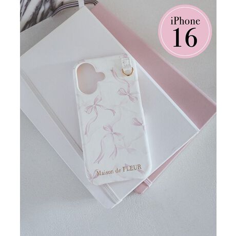 【iPhone16対応ケース】淡いカラーリングのリボン柄が大人可愛いiPhone16ケース。