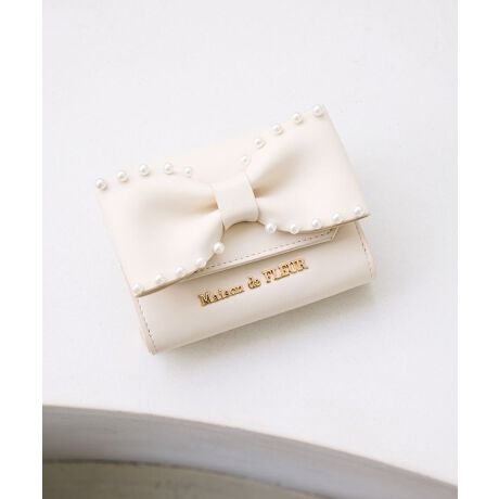ボリューム感のあるリボンにパールのアクセントが大人可愛いミニウォレット。