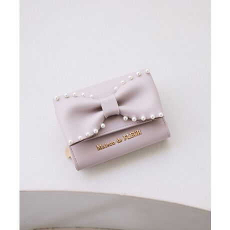 ボリューム感のあるリボンにパールのアクセントが大人可愛いミニウォレット。