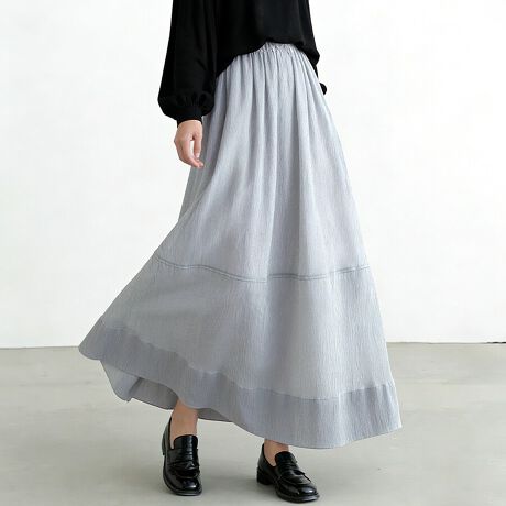 絶妙な透け感が程よく、歩くたびにふわっと広がるフレアスカート