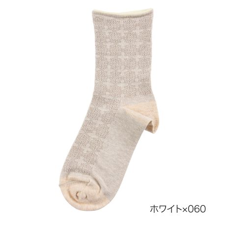 【満足 : ゆったりらくらく】 靴下 スパイラル柄 クルー丈 アルガンオイル加工(3145-03N