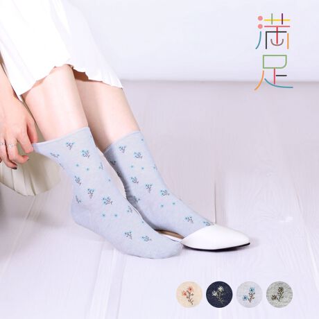 【満足 : ゆったりらくらく】 靴下 小花柄 クルー丈 アルガンオイル加工(3145-04N)