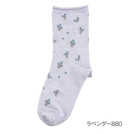 【満足 : ゆったりらくらく】 靴下 小花柄 クルー丈 アルガンオイル加工(3145-04N)