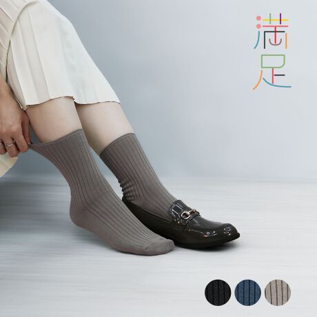【満足】 靴下 調温 無地 リブ クルー丈 履き口ゆったり(3345-11N)