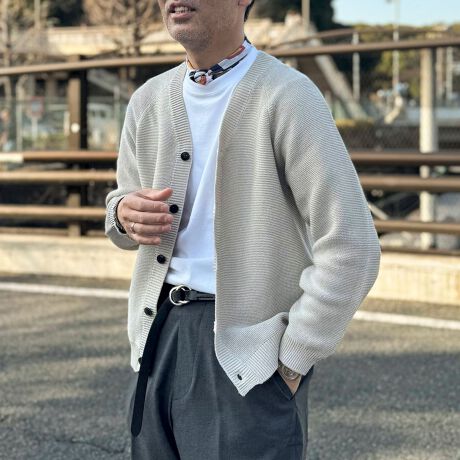 7Gガーター ラグランスリーブ Vネックニットカーディガン(インナー付き)25SS
