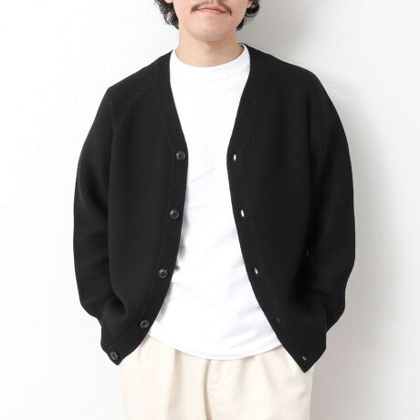 清涼感のあるガーター編みVネックニットカーディガン