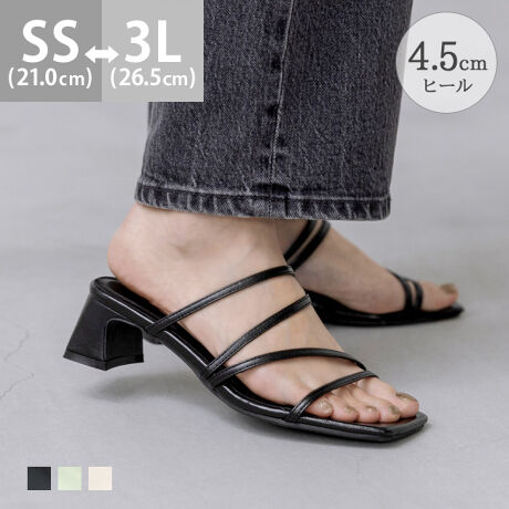 細身のストラップが連なったデザインは足元からすらっと華奢に。