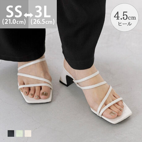 細身のストラップが連なったデザインは足元からすらっと華奢に。