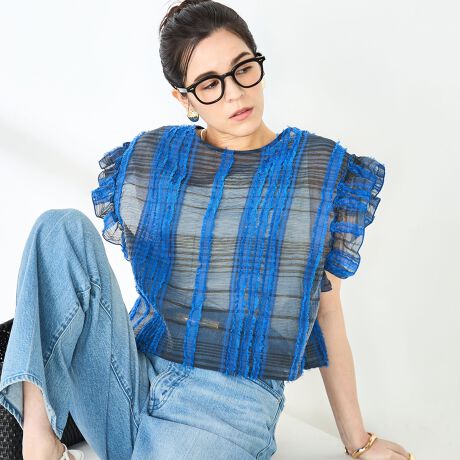 《セットアップ対応》KIRYUチェック柄カットジャガードブラウス