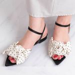 ・ビッグリボンとフロッキードットプリントが目をひくサンダル。