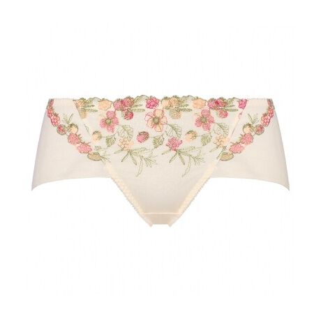 フレーバーウォーターを表現したフルーティーなエンブロイダリーレースをフロントとサイドに配したレーシーなデザイン。