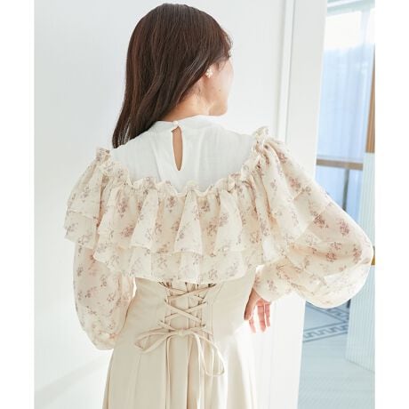 バックウエストはレースアップでくびれを強調し、女性らしい細見えシルエットが完成◎