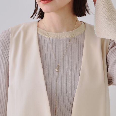 ニットやシャツの上にさらりと合わせることで、女性らしさとスタイリッシュさを両立。