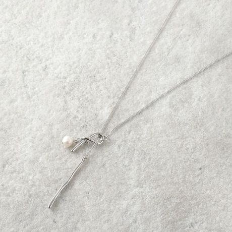 Y字のシルエットが美しい、フェイクパールと変形メタルの組み合わせが魅力のネックレス。