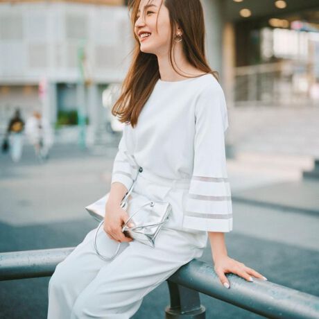 上品なフレアスリーブデザインに、シアーデザインでトレンド感をプラスしたニットプルオーバー