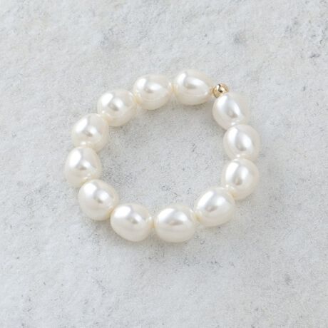存在感のあるビッグフェイクパールがアクセントのヘアゴム。
