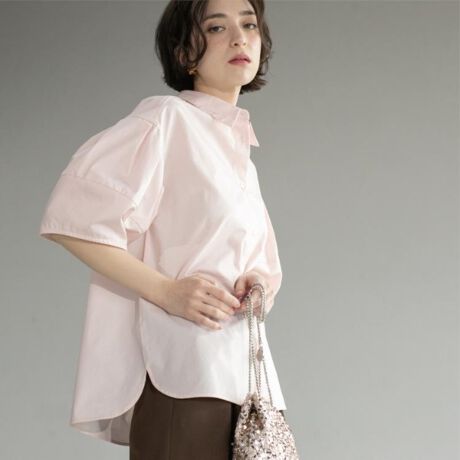 ・ランタンスリーブデザインで、袖のボリューム感がポイントの前開きシャツブラウス。