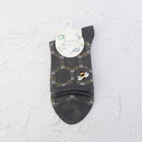 花柄の中に、小鳥や蜂の刺繍をあしらった可愛い靴下。