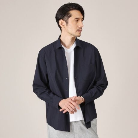 春夏人気の麻調合繊素材のシャツです。