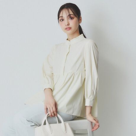 《6color》フリルバンドカラーペプラムブラウス【洗濯機洗い可イージーアイロン防シワ】