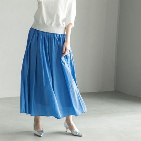 シアー感のある表地を使用した、トレンドライクなギャザーフレアスカート