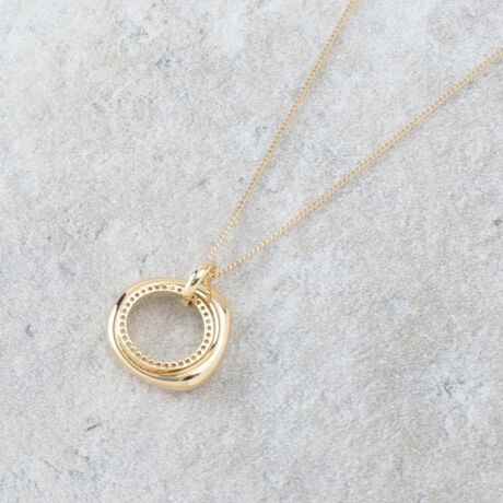 繊細なチェーンに洗練されたメタルリングとビジューがあしらわれたネックレス。