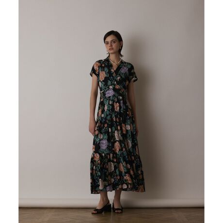 大人が上品に着て頂ける、一枚で華やかに着映えるワンピース。 アンティーク生地の資料を基に作成した、エレガントなオリジナル柄を使用。ドレープ感が綺麗なレーヨン素材にのせた甘さ控えめなシックなカラーが、一際目を惹きます。カシュクール型で女性らしく仕上げつつ、バックウエストにはシャーリングを施してメリハリをプラスし、大人っぽく着こなせるシルエットに仕上げました。しっかり長めにとった着丈や贅沢に分量をとったスカートのシルエットが、歩いた時に優雅に揺れ動きます。シーズンスタイルを盛り上げてくれる、特別感溢れるワンピース一着をこの機会にぜひ。