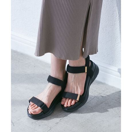 ・着脱のしやすい3点ベルクロストラップのウェッジソールサンダル。