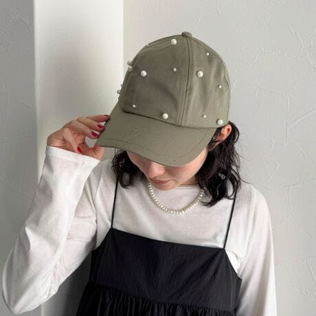 ・パールビーズが散りばめられたレディレイクなキャップ