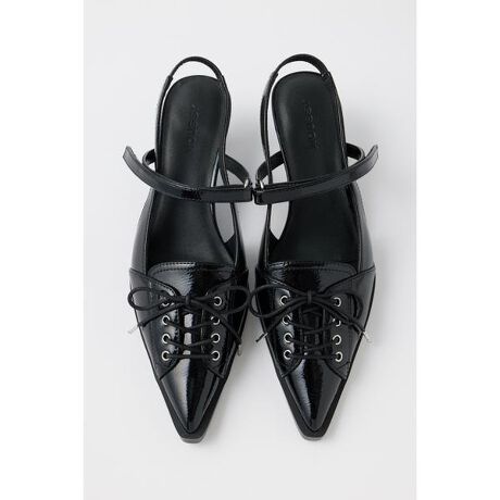 【LACE UP SLING BACK MULE / レースアップスリングバックミュール】■ポイントツルっとした表面感のフェイクレザーでお作りしたミュール。スリングバック、甲の部分にもストラップのあるデザインで歩きやすさにこだわりました。デイリー使いしやすい安定感のあるヒールデザインです。■ディテールポインテッドトゥ×レースアップディテールのトレンドデザインがポイント。フルレングスのデニムから覗くバランスにこだわりました。■スタイリングデニム合わせはもちろん、ソックスなどをプラスするのもおすすめ。■商品のお気に入り登録お気に入りアイテムの再入荷・在庫1点などの通知を受け取ることができます。■ブランドのお気に入り登録新作アイテムの入荷や人気アイテムの再入荷、おすすめトピックスなど、いち早くブランドの情報を受け取ることができます。[注意事項]※弊社管理上のカラーを表記しており、タグのカラー表記と異なる記載となっている場合がございます。※商品画像の色味は、屋外や屋内の光の照射や角度により実物と色味が異なる場合がございます。※着用、お取り扱いの際は、アテンションタグをご確認ください。