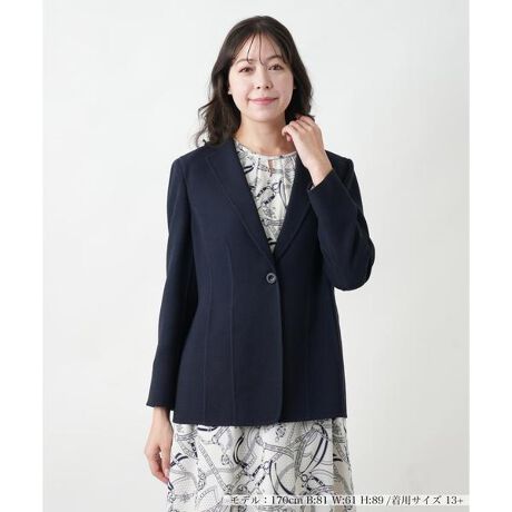 エレガントで洗練されたデザインのテーラードジャケット。シンプルながらも美しいシルエットを演出する立体的なパターンが特徴です。ウエストラインをさりげなく引き締める切り替えが施され、スタイルアップ効果も期待できます。シングルボタンのフロントデザインが上品で、オフィスやフォーマルなシーンにも最適。柔らかく程よい厚みのある素材で、着心地の良さも魅力です。同素材のワンピースとセットで着用すれば、より洗練された印象に。