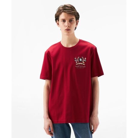 左胸にあしらわれたクレストでトラディショナルな雰囲気を高めたTシャツです。1枚でさらりと着こなしつつもワンポイントに際立つデザインがスタイリッシュなアイテム。程よくゆとりのあるレギュラーフィットシルエットはボトムを選ばずコーディネートできるのもポイント。