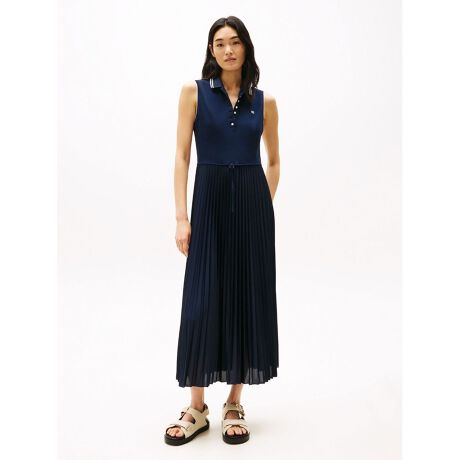 スポーティプリーツノースリーブポロワンピース