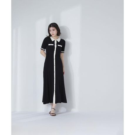 配色を効かせた1枚で着映えるニットワンピース。トレンドのポロデザインを品よく落とし込み、キレイ目な印象のデザインに。スカート部分はプリーツのような編み柄にすることで、より体のラインを拾わないデザインです。ウエスト部分は華奢なリブなので体にフィットするシルエットを演出します。<素材>ハイゲージの軽やかな糸を使用しています。<詳細>仕様・開閉なし裏地・なし透け感・なし / 光沢・なし / 伸縮性・あり 生地の厚さ・普通※モデルの着用画像の場合、光の当たり具合により、実際の色味と異なって見えることがございます。色味は、商品単体の画像をご参照ください。